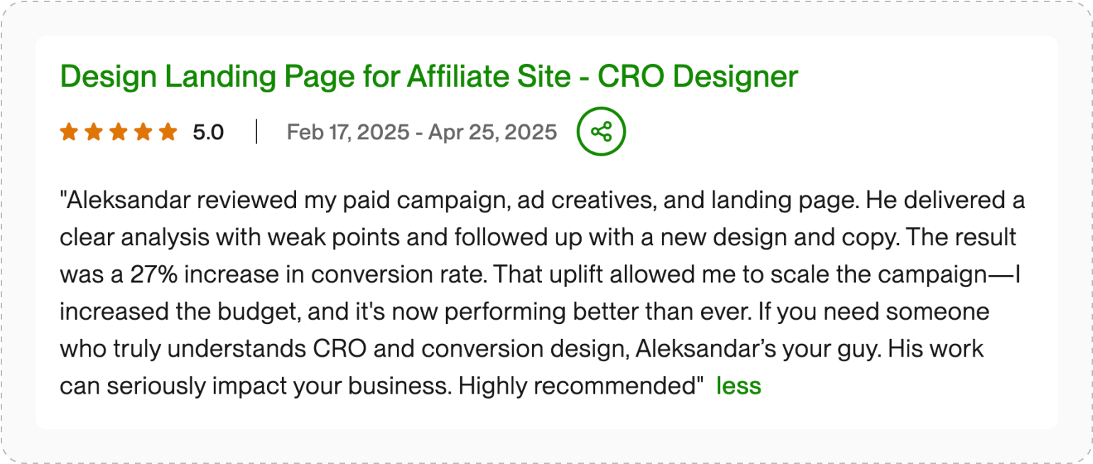 We ran a full UX audit using heatmaps, scroll data, and ad campaign performance.We also reviewed affiliate industry best practices and Baymard’s UX research.